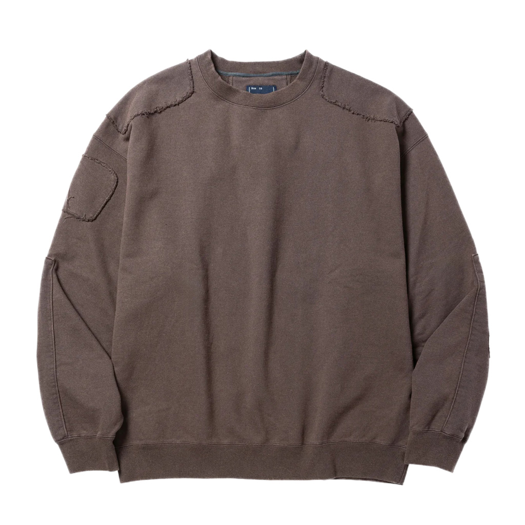 キルティングのあて布が特徴のスウェットシャツ。