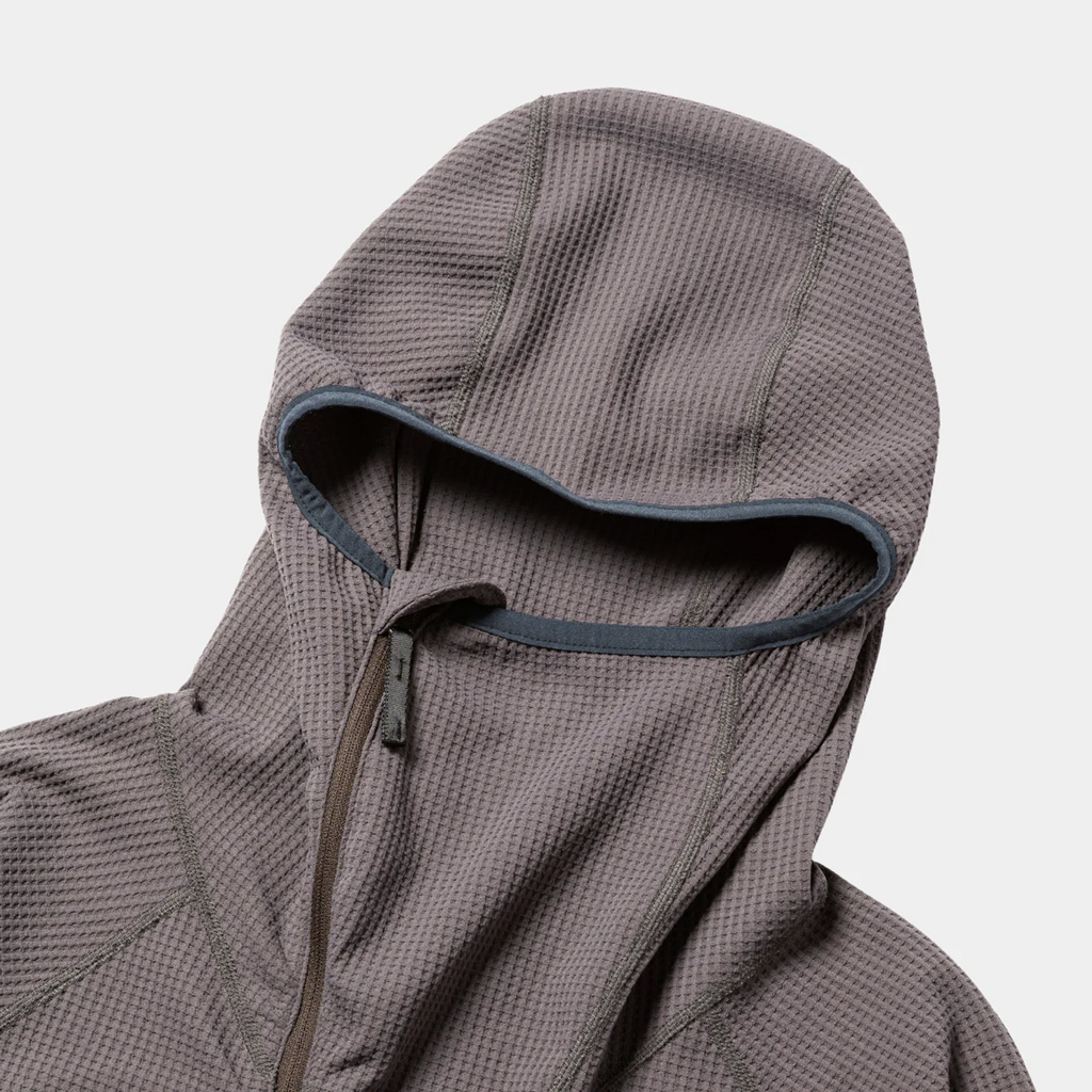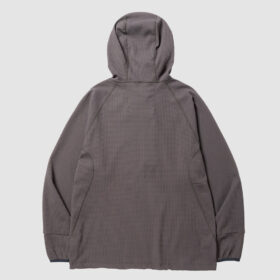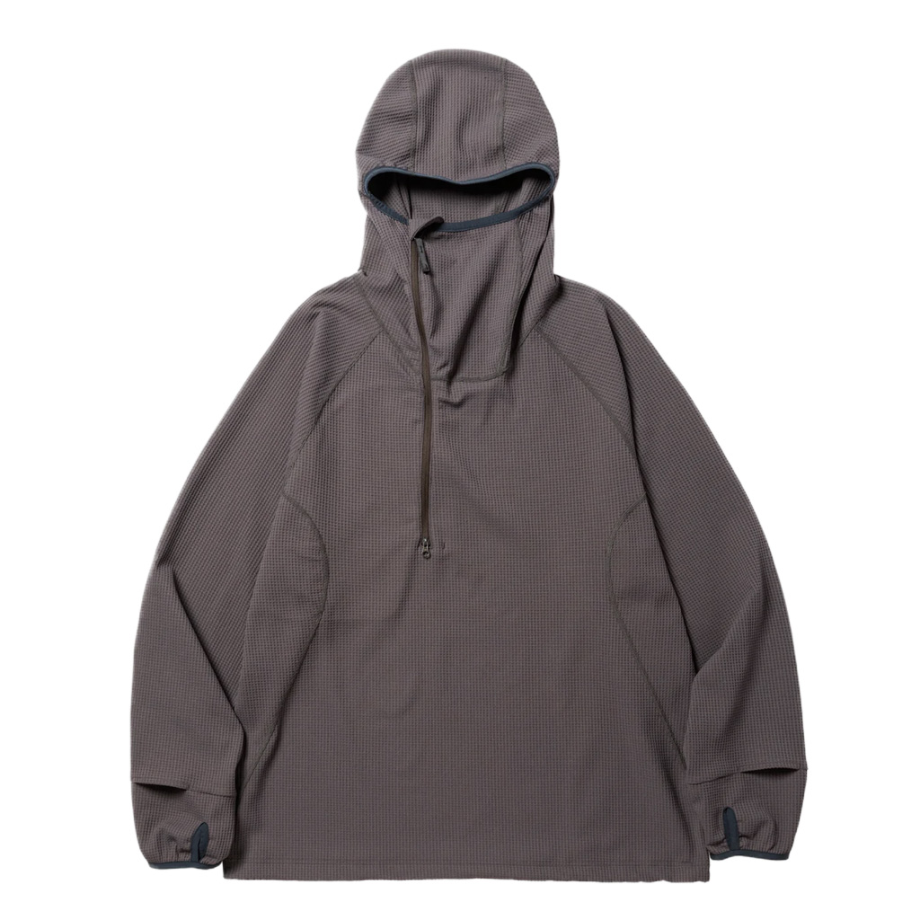 高めの襟によりバラクラバの様にフィットしたフードを採用。