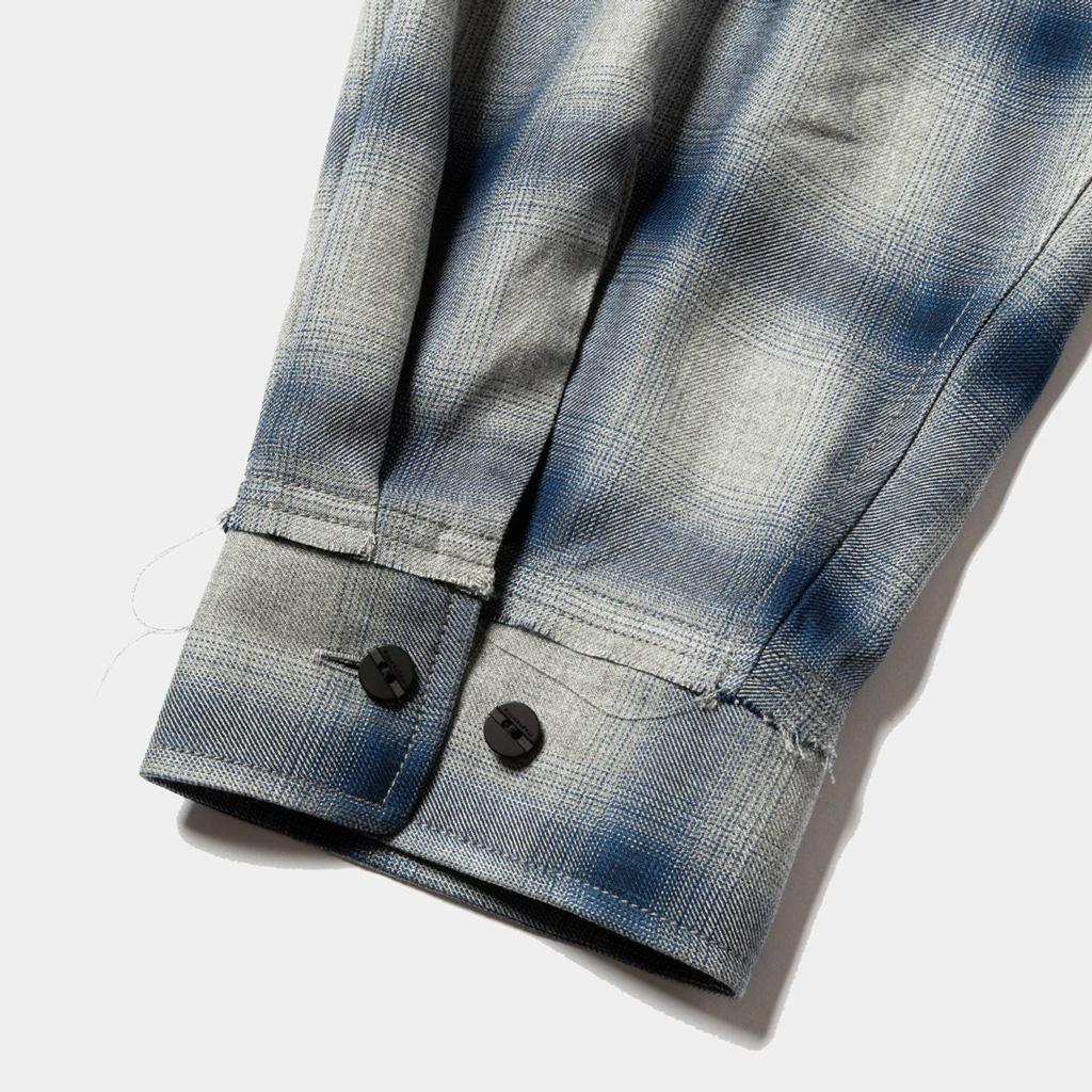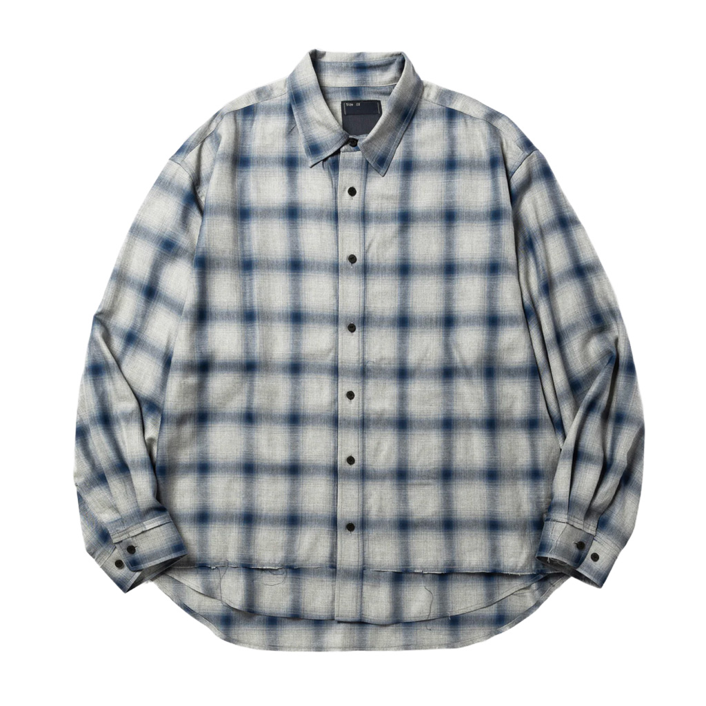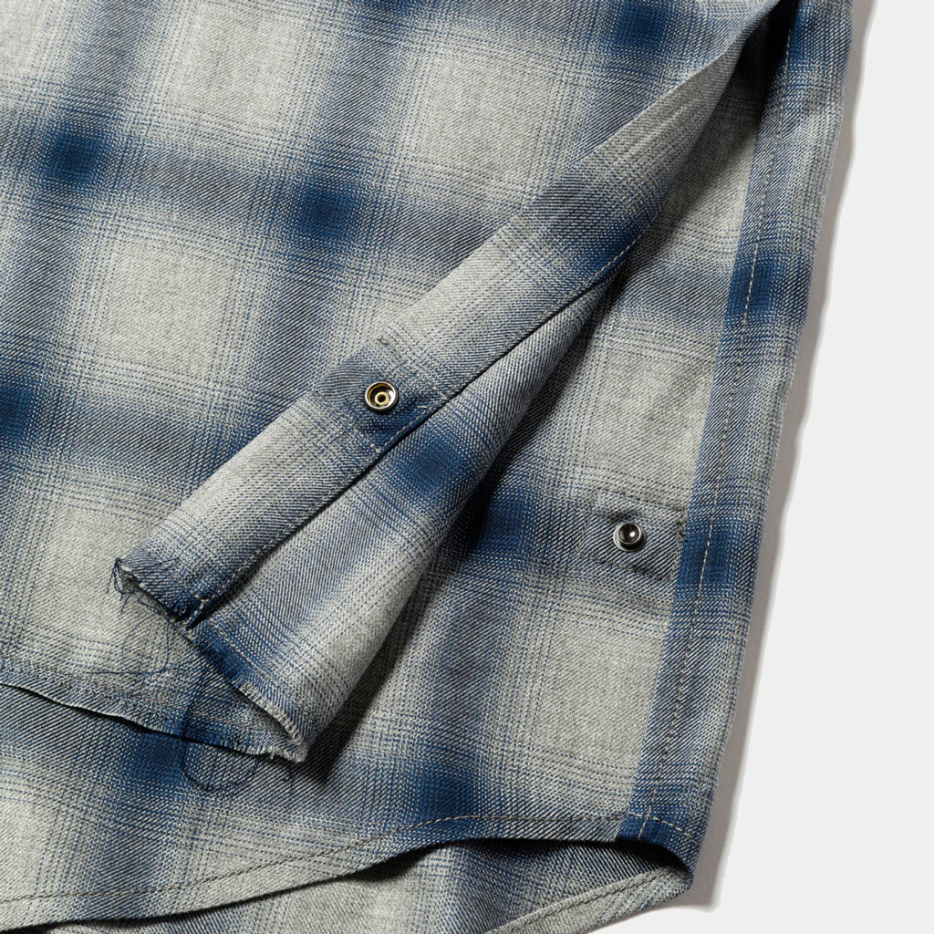 レーヨンオンブレー素材を使用したL/Sシャツ。