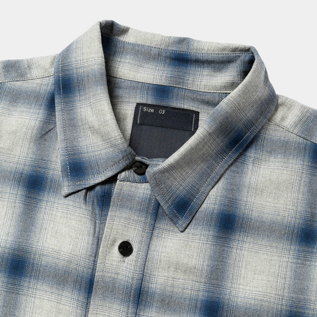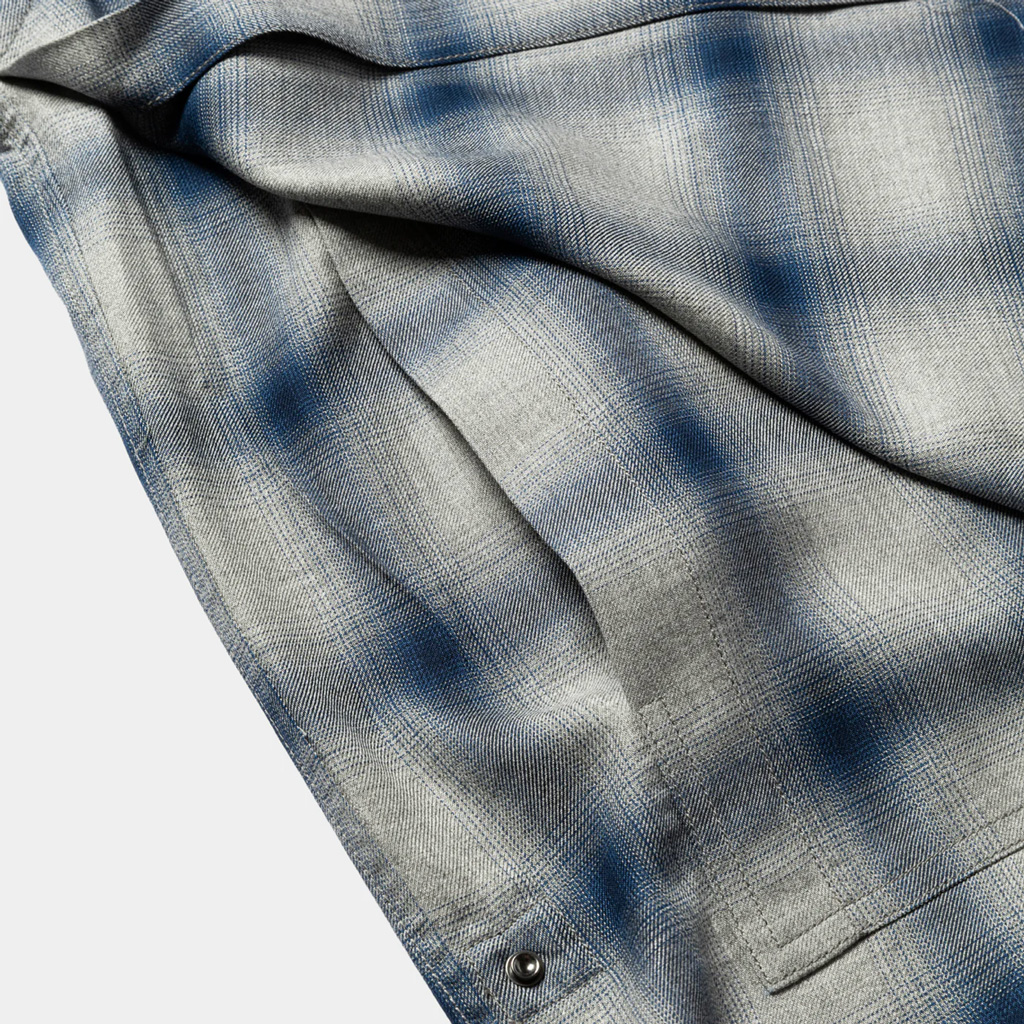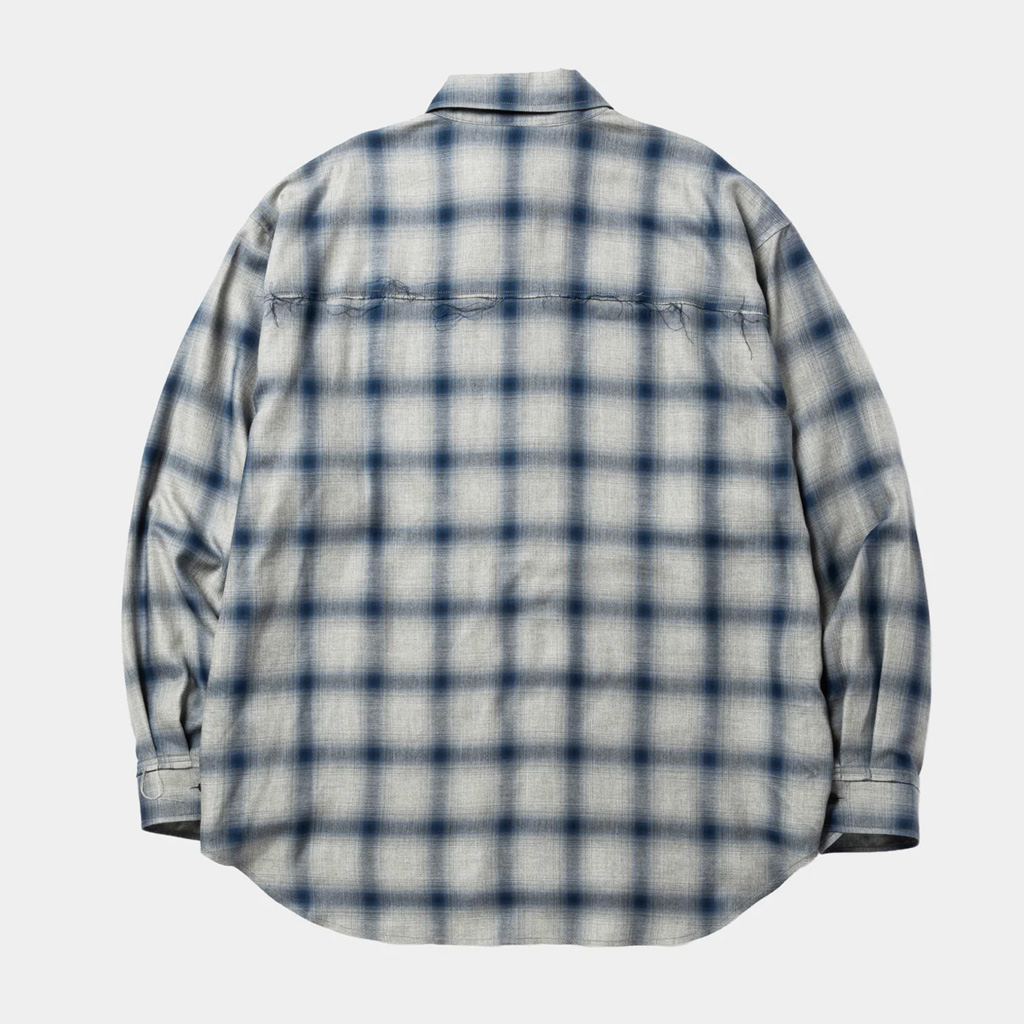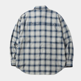 レーヨンオンブレー素材を使用したL/Sシャツ。