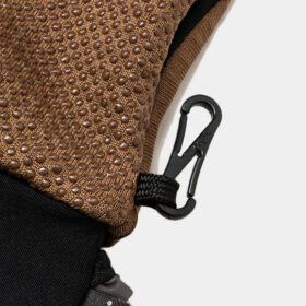 手の甲部分に内蔵されたミトン型のウィンドシェルを被せる事でフリースの弱点である防風性能を高めたデザイン。
